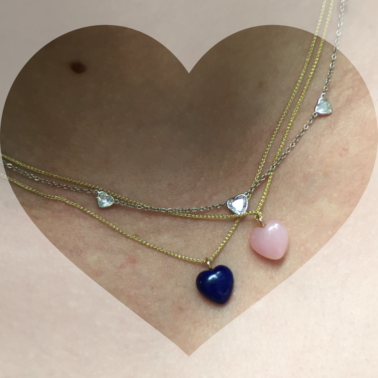 Oh my gosh, this necklace. Hand selected carved diamond hearts taper in size from largest in the center to smallest on the ends. It's stunning!