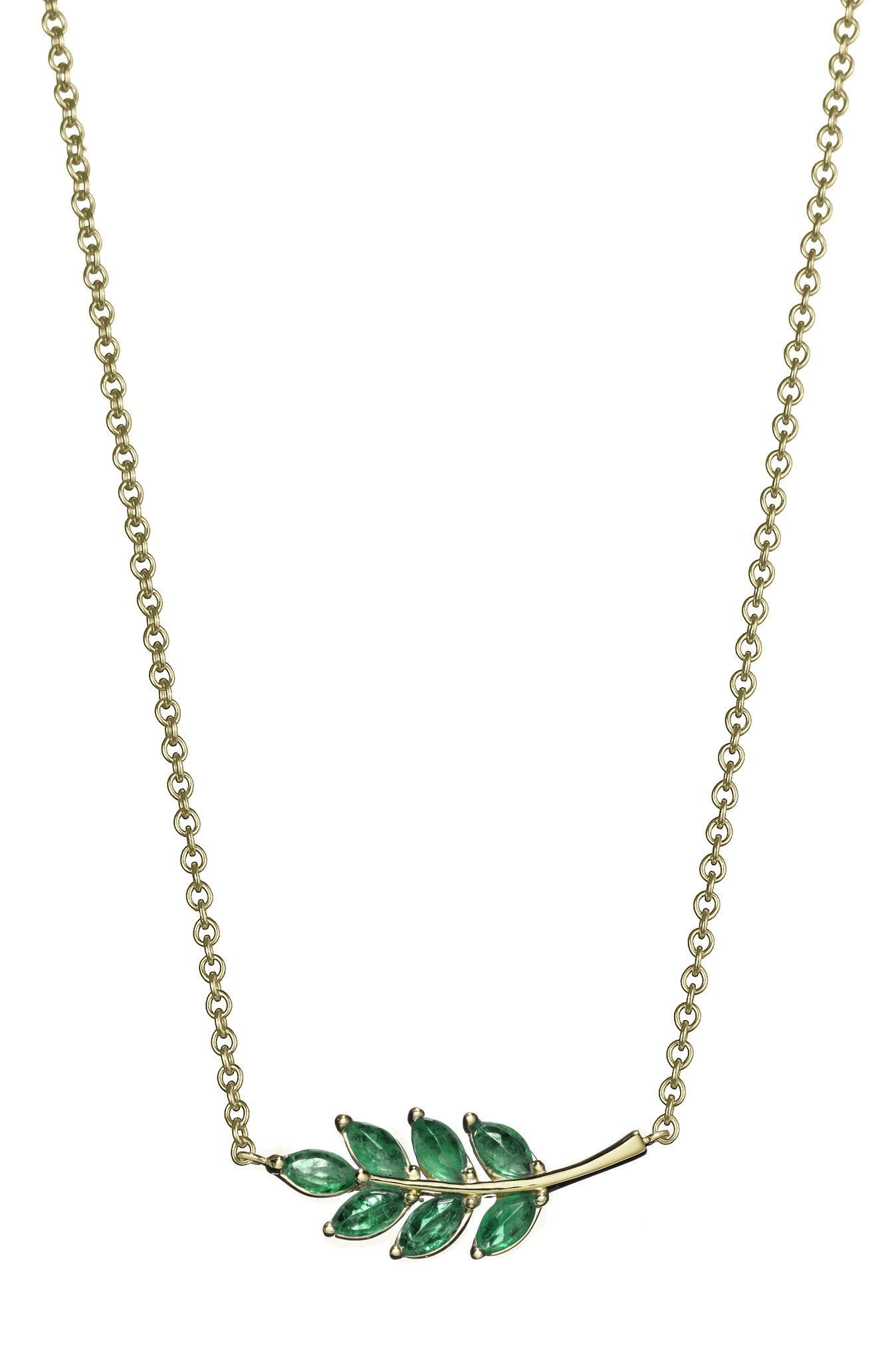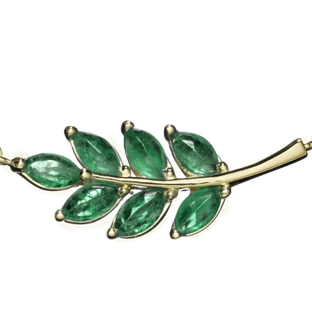 A colorful and pretty necklace. The branch is slightly curved and each leaf is a marquise diamond set upside down to give it a domed look.
