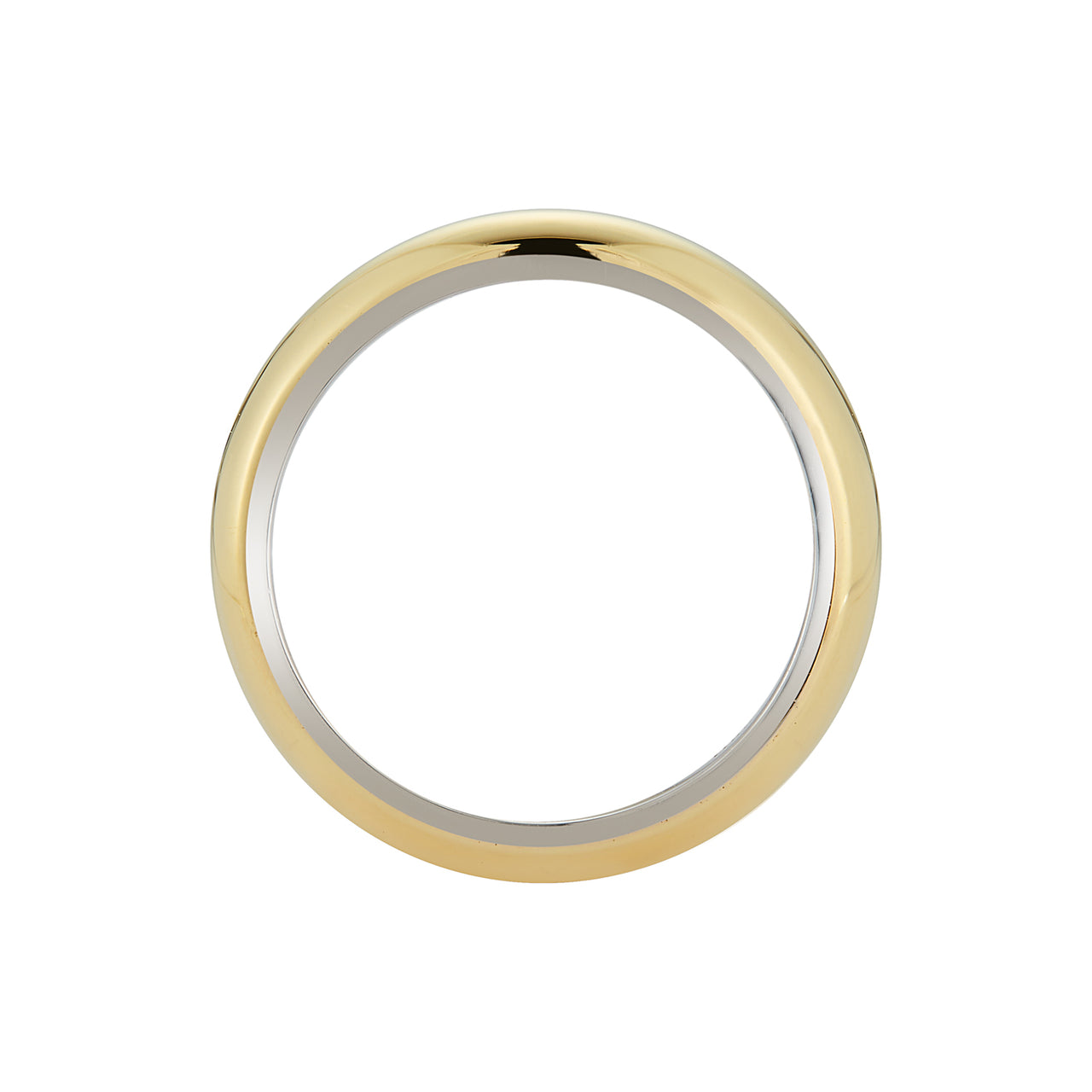 This heavy ring is a unique take on the 'plain gold band'. The inside shank of in a layer of platinum fused to 18k yellow gold. Perfect for someone who has an allergy to gold.