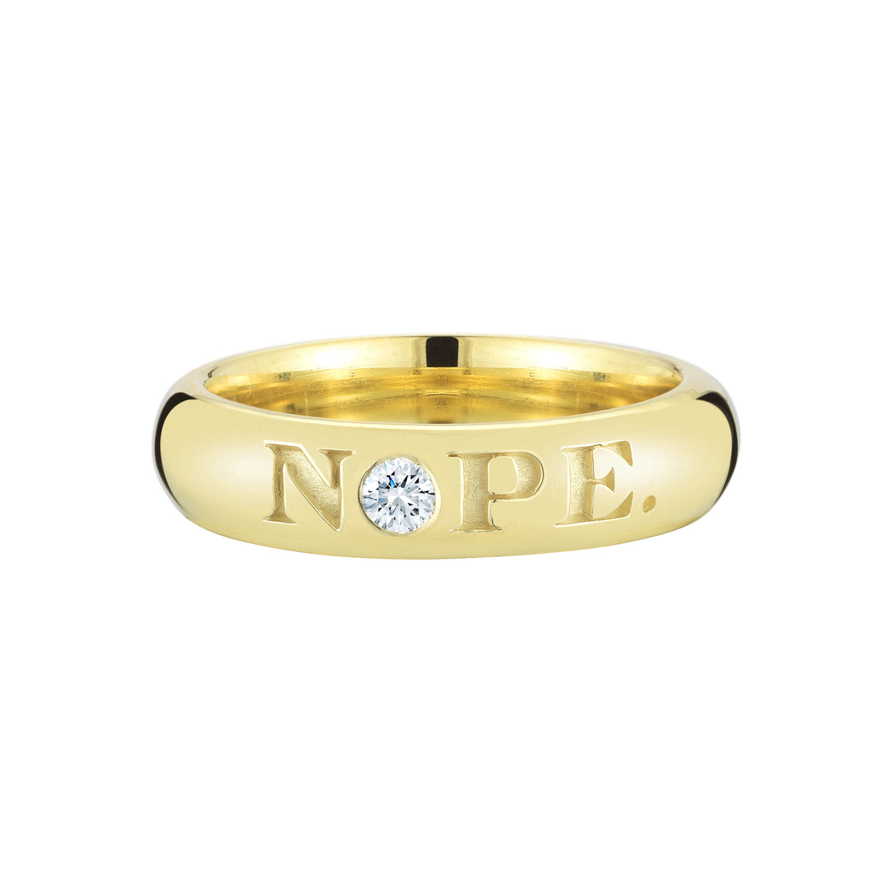 Feeling indecisive? Us too. With "NOPE." engraved on the front of this ring and "OK!" engraved on the back, you can change your mind without changing your jewelry.