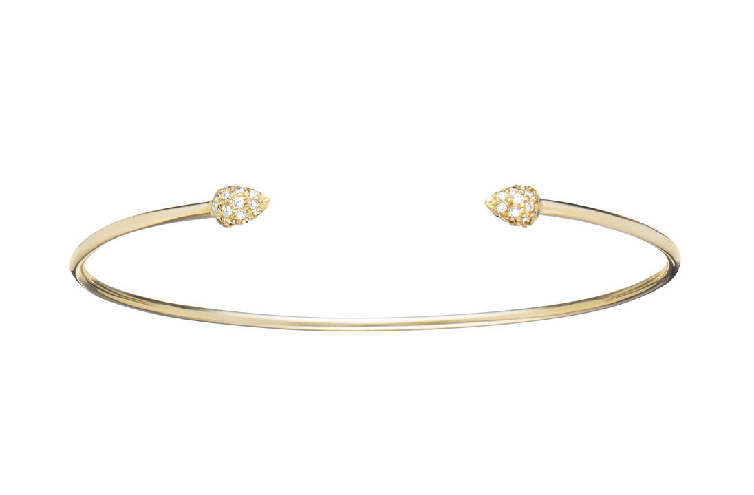 A simple bangle, timeless in design. The diamonds are set around the entire finial, no space wasted.