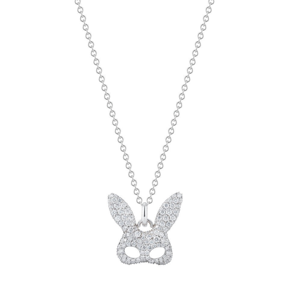 Super cute white gold rabbit mask set with mixed pave diamonds.