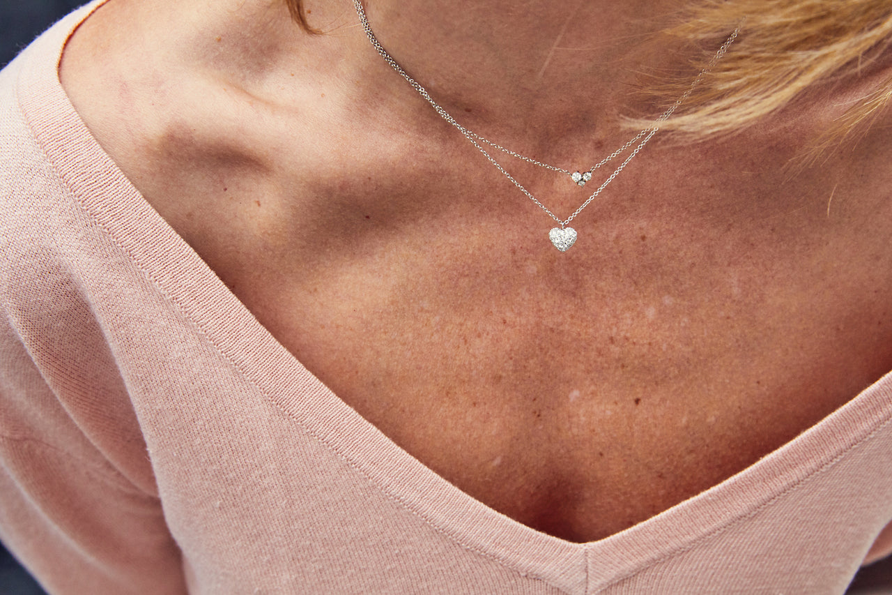 WHITE PUFFED DIAMOND HEART NECKLACE